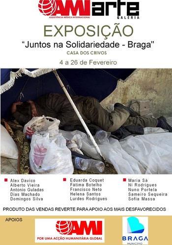 A exposição de artes plásticas "AMIarte: Juntos na Solidariedade - Braga" foi inaugurada no passado dia 4 e irá decorrer até 26 de Fevereiro, na Casa dos Crivos, no centro histórico de Braga. Esta iniciativa reúne cerca de meia centena de obras de 15 artistas plásticos e visa a angariação de fundos para a que a Fundação AMI possa fazer face às múltiplas despesas, quer com os centros de apoio aos mais desfavorecidos instalados em diversos pontos do país, quer com as vítimas de flagelos em todo o mundo.